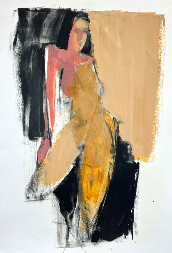 Seated Figure- charcoal, oil and cold wax on paper